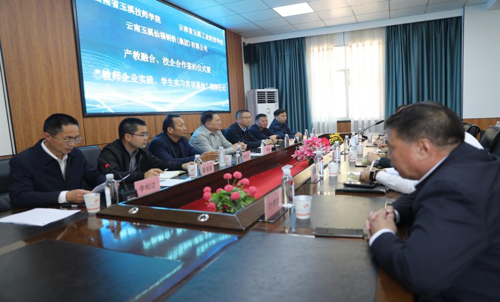 2024年3月6日,在云南玉溪仙福鋼鐵(集團)有限公司三樓小會議室隆重舉行云南玉溪仙福鋼鐵(集團)有限公司與云南省玉溪技師學院、云南省玉溪工業(yè)財貿(mào)學校舉行產(chǎn)教融合、校企合作簽約儀式暨“教師企業(yè)實踐、學生實習實訓基地”揭牌儀式,新平縣人民政府黨組成員、翟俊鵬副縣長、仙福鋼鐵集團李枝官總經(jīng)理、云南省玉溪技師學院黨委張紹東書記等共計32名領導出席,會議由云南省玉溪技師學院副院長李相達主持。云南省玉溪技師...