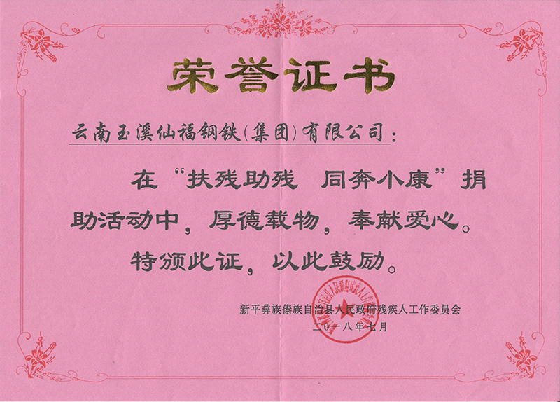 云南玉溪仙福鋼鐵(集團(tuán))有限公司脫貧攻堅捐贈